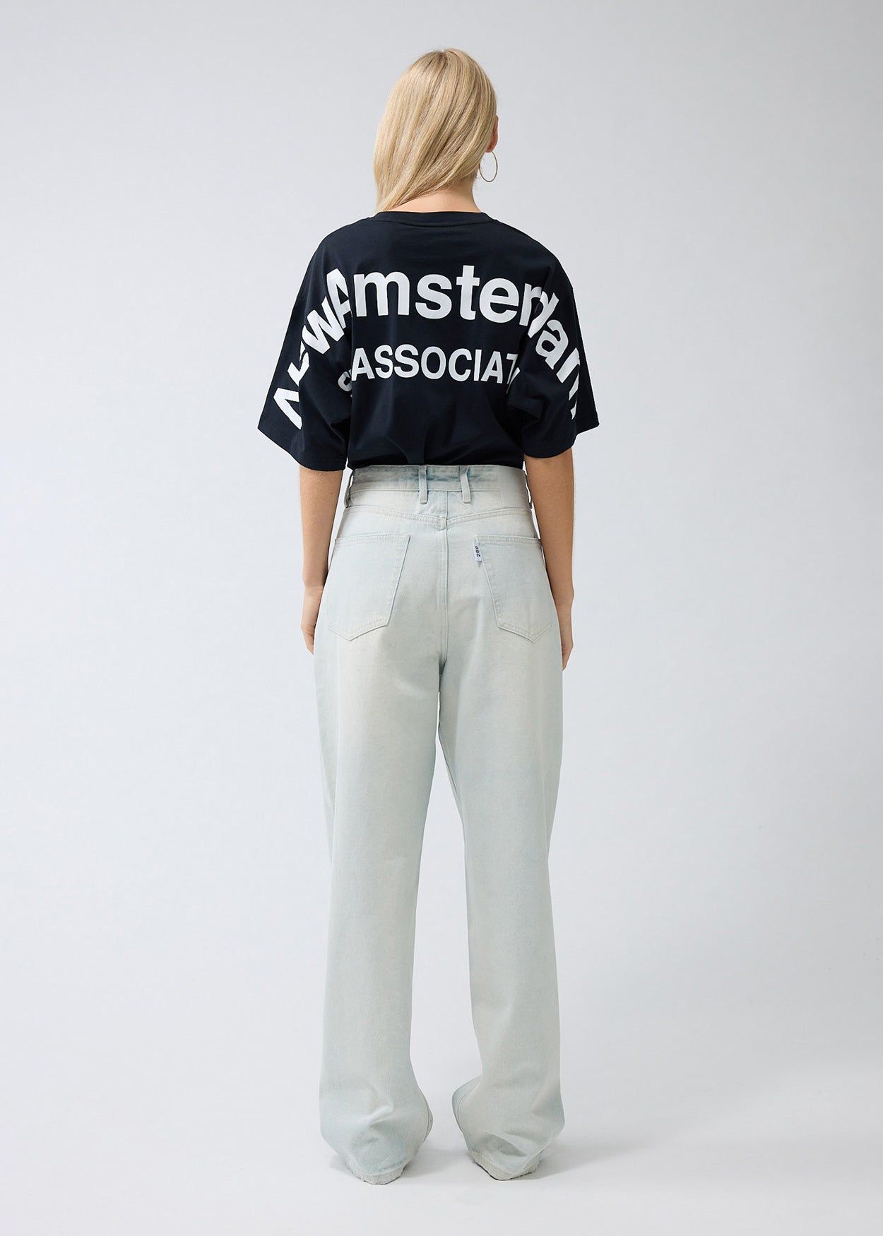 Denim trouser cut to a relaxed fit with a mid waist and a straight leg. The garment has a fixed waistband and is available in two lenghts. Detailed with a Metal branded button, and New Amsterdam name embroidery above the left pocket. These pants are made out of a cotton denim.